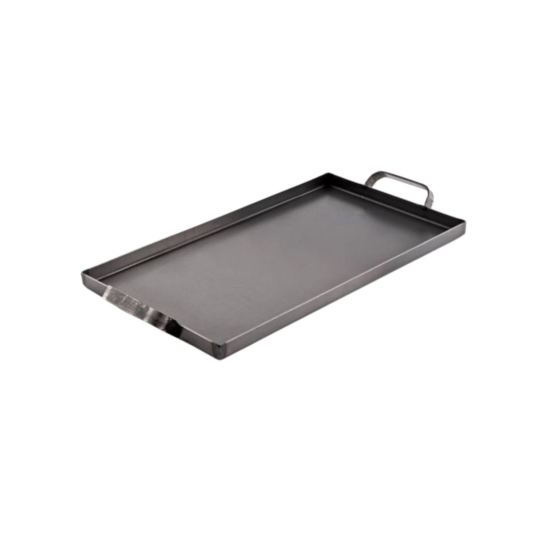 Mide 48 x 27,3 cm y 2,3 cm de alto. Ocupa dos hornallas. Su espesor es de 2,5 mm. Ideal para que ser manipulada con facilidad.
