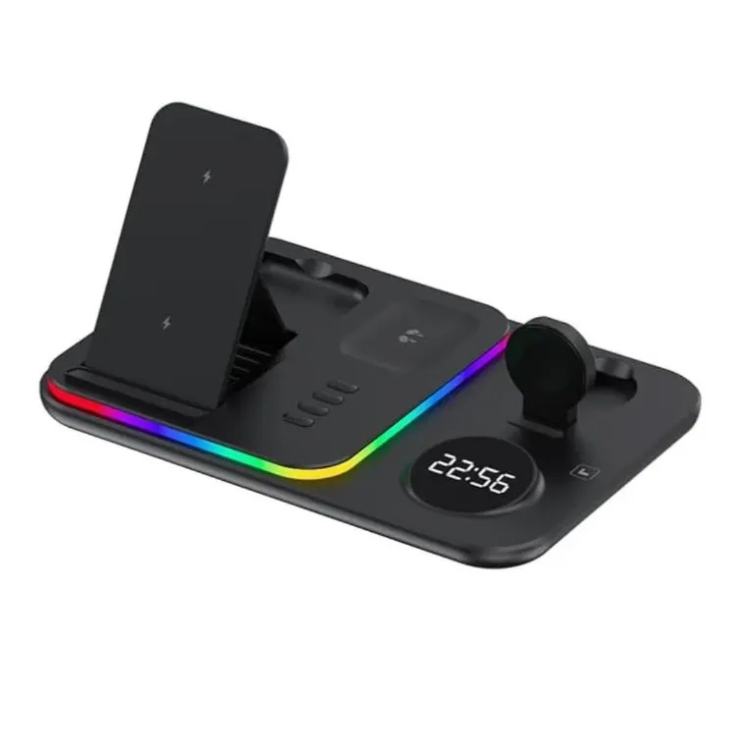 Descubre la solución perfecta para mantener todos tus dispositivos cargados y organizados con estilo. Este innovador cargador inalámbrico 5 en 1 combina funcionalidad y diseño moderno para adaptarse a tus necesidades.