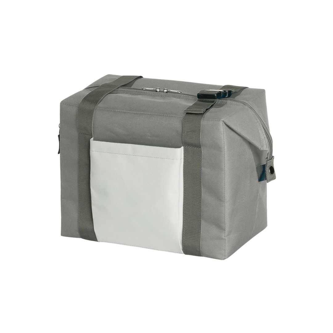 «Bolsa térmica con 2 formas de uso, fabricada en poliéster 600D. Dispone de un compartimiento principal con doble cierre e interior acolchado y forrado con PEVA. Incluye un bolsillo frontal con cierre, tiras ajustables, con refuerzo para el hombro. Capacidad: 21L