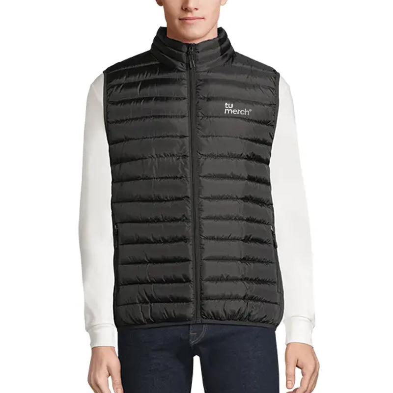 Chaleco ligero para hombre confeccionado en tafetán 280T. El tejido exterior y forro están fabricados 100% en poliéster, con relleno tipo plumón 100% poliéster. Cuenta con abertura y bolsillos laterales con cierre de nylon, cursor de metal con tirador de fantasía negro, cuello alto y terminaciones elásticas en la parte inferior y en las sisas para un mejor ajuste. Incluye bolsa para guardar la prenda. Es ideal para uso urbano, actividades al aire libre en climas frescos y como abrigo liviano para media estación. CERTIFICACIÓN: PETA-Approved Vegan y OEKO-TEX Standard 100.