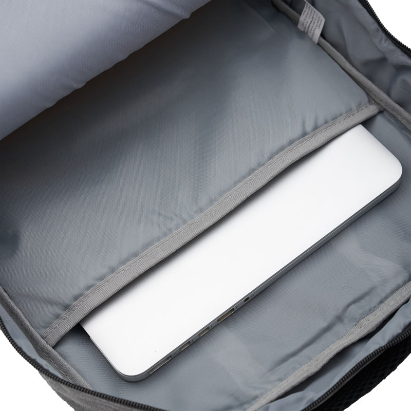 «Mochila con compartimiento principal porta notebook cuenta con bolsillos frontales con cierre y espaldar acolchado.