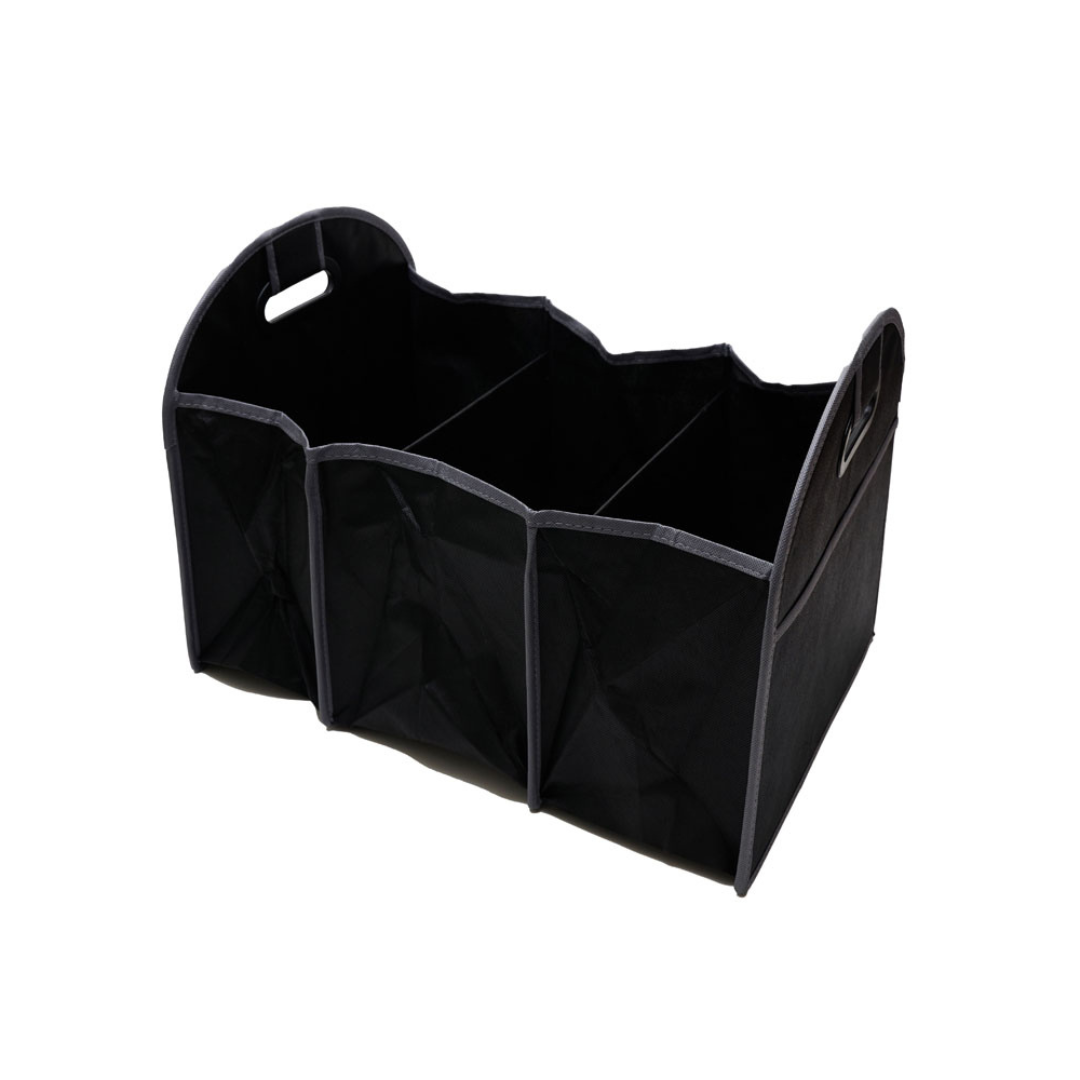 «Organizador para auto plegable, con tres compartimientos internos. Medidas: 33 x 32 x 17 cm. Tahg.