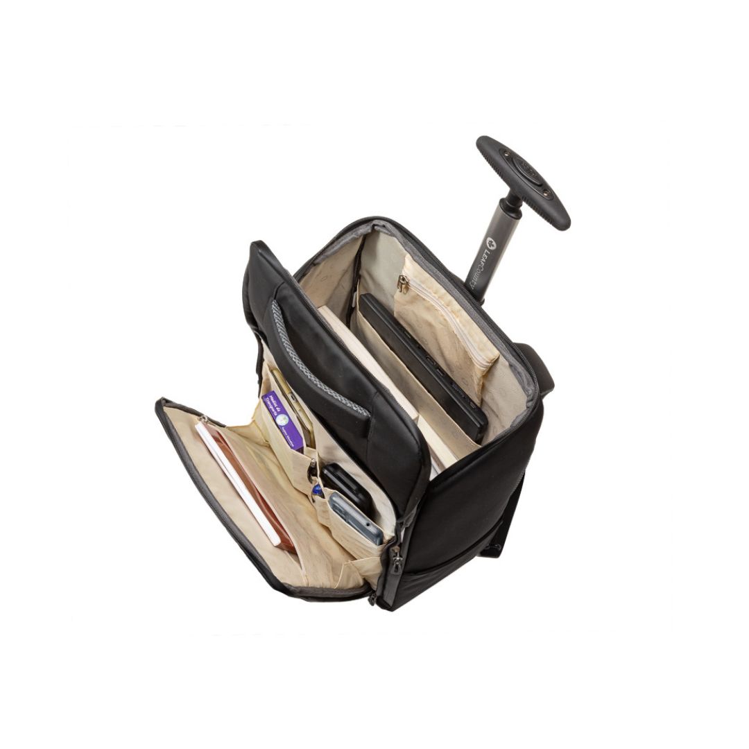 Con superficie engomada Waterproof, se convierte fácilmente en mochila o carrito, para mayor practicidad según la necesidad. Apertura de 90° y cierres sellados anti-filtración. Porta notebook de hasta 17”. Capacidad: 30 litros.